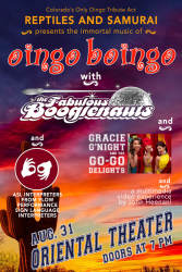 Featuring a lineup of some of the most sought-after and talented musicians in Denver, Reptiles and Samurai — the Mile High’s only Oingo Boingo tribute act — is ready for prime time, and this show looks to be an instant classic. The 9-piece act debuted last spring at a private event hosted at the Owl Saloon in Denver, and was an instant fan-favorite among the wall-to-wall crowd.