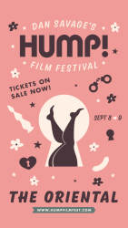 Back in Action! - The 2021 HUMP! Film Festival is screening in theaters this fall. Watch the newest lineup of sexy short films, curated by Dan Savage at The Oriental September 8th & 9th!